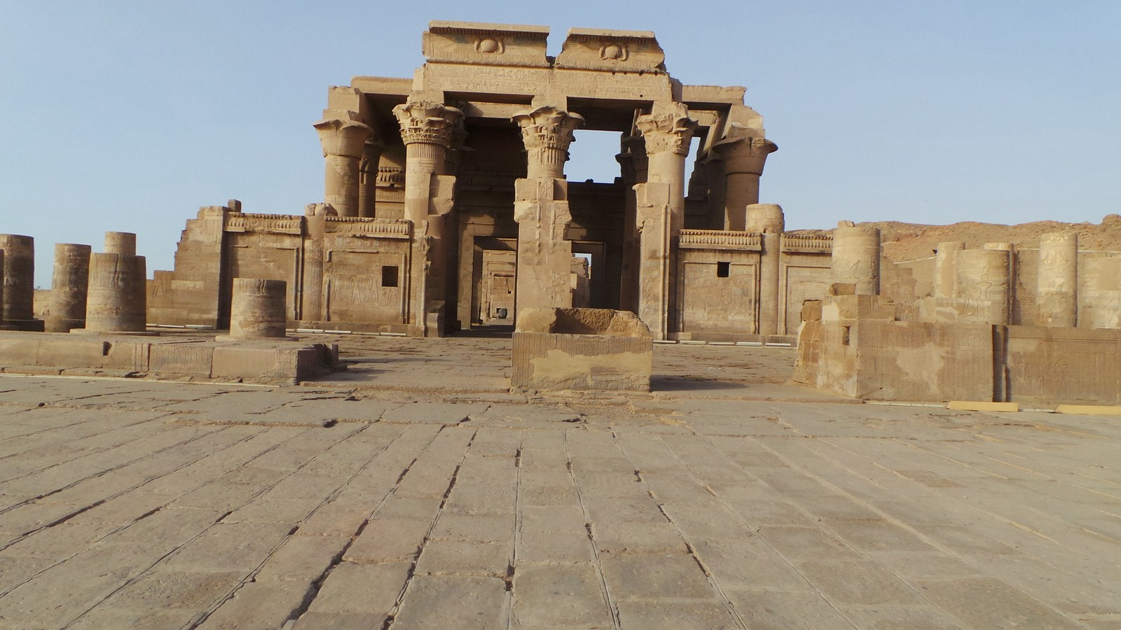The Temple of Kalabshahis within sight of the High Dam on Lake Nasser. This temple, whose foundations date back to the reign of Amenhotep II in the 15th century BC, was built during the reign of the Roman Emperor Augustus on a structure erected under Ptolemy IX. The Kalabcha temple has all the classic elements of a Greco-Roman era temple but ultimately it is a rich combination of depictions that include Egyptian and Roman subjects such as images of Roman emperors and pharaohs worshiping the Egyptian gods. This Temple was dedicated to the Egyptian God of Nubian origin, Mandoulis. He appears in the form of a bird with a human head, or of a young child placed on a lotus: he embodies solar youth. This deity had considerable worship in the Ptolemaic period. This temple has a large pylon, connected to the rest of the complex by a wall, thus providing an enclosed space like a courtyard. Stairs lead to a second floor, offering a spectacular view of the lake towards the top dam.